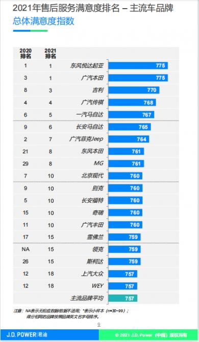 作為全球權(quán)威的消費(fèi)者洞察和市場(chǎng)研究機(jī)構(gòu),J.D.Power以獨(dú)立和公正享譽(yù)業(yè)界,為汽車行業(yè)提供了衡量整個(gè)車輛售后服務(wù)和交車過(guò)程體驗(yàn)的客戶滿意度標(biāo)桿。此次由J.D.Power主導(dǎo)的2021年度中國(guó)汽車售后服務(wù)滿意度研究報(bào)告,覆蓋全國(guó)70個(gè)城市37327名車主,涉及49個(gè)汽車品牌,對(duì)于消費(fèi)者來(lái)說(shuō)十分具有參考意義。MG以761分的總體滿意指數(shù),在自主品牌中排名第3,在主流車品牌中排名第8,充分證明了MG在售后服務(wù)上的滿意度和含金量。