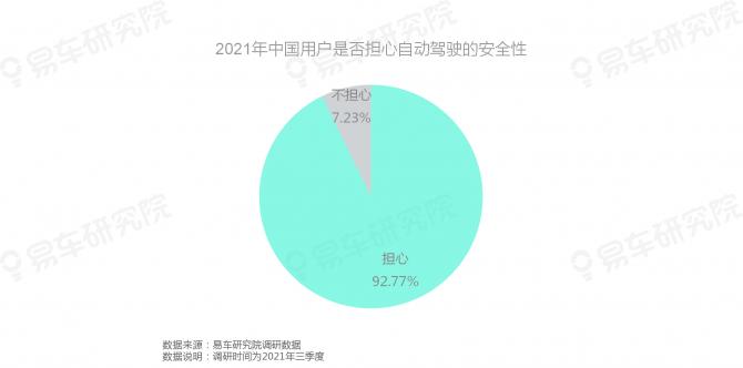 2021年中國(guó)用戶(hù)對(duì)自動(dòng)駕駛安全性擔(dān)心的比例高達(dá)92.77%