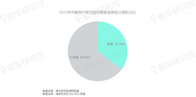 2021年中國(guó)用戶(hù)愿為自動(dòng)駕駛選裝包付費(fèi)的占35.34%,其中68.48%愿意接受1~2萬(wàn)元價(jià)格