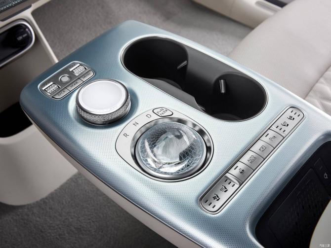 該車的另一個亮點是采用了“水晶球換擋”(Crystal Sphere),當車輛沒啟動的時候,是一個水晶球,啟動后則翻轉(zhuǎn)切換到旋鈕擋把,非常的精致。