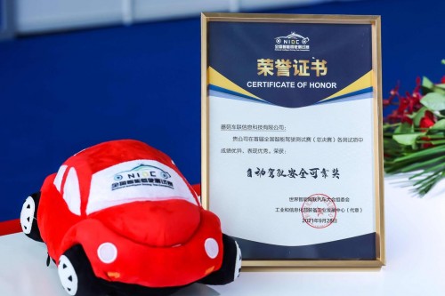 比賽結(jié)束后,組委會對獲得首屆全國智能駕駛測試賽(總決賽)優(yōu)勝獎的企業(yè)和車主用戶頒發(fā)獎金和榮譽證書。蘑菇車聯(lián)獲得自動駕駛安全可靠獎。