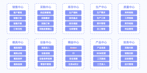 “輕智造”基于輕流aPaaS能力,解決制造企業(yè)業(yè)務(wù)管理難題。它構(gòu)建了銷售中心、采購中心、庫存中心、生產(chǎn)中心、質(zhì)量中心、模具中心、設(shè)備中心、精益中心、產(chǎn)品中心、財(cái)務(wù)中心十大中心模塊,全方位覆蓋制造業(yè)企業(yè)的核心業(yè)務(wù)、輔助業(yè)務(wù)以及日常業(yè)務(wù)流程。