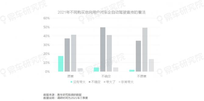 即便有自動(dòng)駕駛購(gòu)買(mǎi)意向的用戶(hù),對(duì)車(chē)企的宣傳與技術(shù)的安全,也有一定的懷疑和擔(dān)心