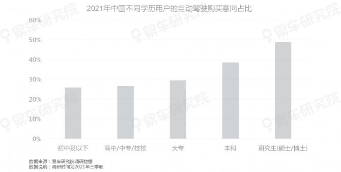 用戶(hù)的學(xué)歷越高,購(gòu)買(mǎi)自動(dòng)駕駛的意向越強(qiáng)