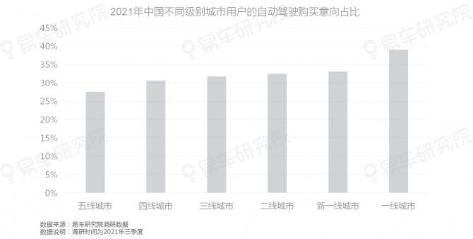 用戶(hù)的城市級(jí)別越高,購(gòu)買(mǎi)自動(dòng)駕駛的意向越強(qiáng)
