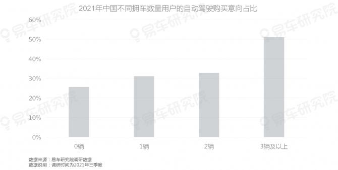 用戶(hù)的家庭擁車(chē)數(shù)量越多,購(gòu)買(mǎi)自動(dòng)駕駛的意向越強(qiáng)