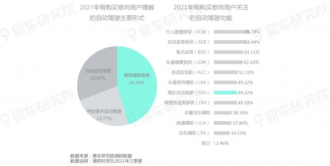 自動(dòng)駕駛并非完整統(tǒng)一的概念,也有三六九等之分,即便有購(gòu)買(mǎi)意向的用戶(hù),也認(rèn)為自動(dòng)駕駛主要屬于高級(jí)輔助駕駛,且對(duì)特斯拉的FSD等高階自動(dòng)駕駛并不十分感興趣,倒反更關(guān)注行人碰撞預(yù)警、自動(dòng)緊急制動(dòng)等簡(jiǎn)單和專(zhuān)一的輔助功能;