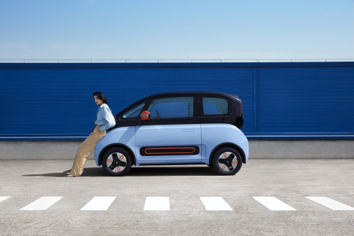 還真有,在前段時間剛上市的寶駿KiWi EV就是一款這樣的車型,這款車型由宋茜為全球代言人,擔(dān)任寶駿KiWi EV的全球創(chuàng)意總監(jiān),整體給人的視覺感受非常的前衛(wèi),按照官方的說法,其是用前衛(wèi)的設(shè)計語言將理性美學(xué)和時尚理念完美融合在一起,以摩登姿態(tài)突破出行品類的便捷,演繹出都市時尚美學(xué)。