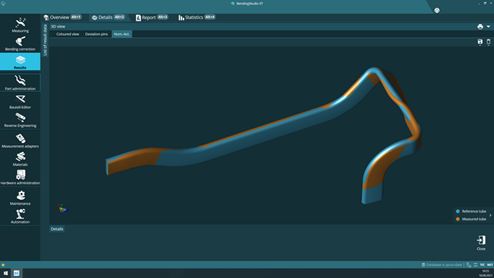 BendingStudio XT具有優(yōu)異的軟件算法,能夠快速收集彎管零件的三維數(shù)據(jù),既可用于評估檢測,也可用于逆向工程。軟件提供CAD數(shù)據(jù)導(dǎo)入功能,可即時(shí)完成管件幾何形狀和中心線的計(jì)算,能有效提高測量效率。而借助軟件的批量檢測功能,在確保操作過程可靠性的同時(shí),還能實(shí)現(xiàn)極高的測量精度。