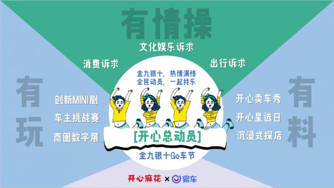 為進一步拉動汽車消費需求,助力車市提質(zhì)增效,易車聯(lián)合國民IP“開心麻花”推出“金九銀十GO車節(jié)”。通過一系列有玩、有料、有情操的新玩法,挖掘汽車消費新潛能,連接用戶需求,促進汽車消費市場回暖。