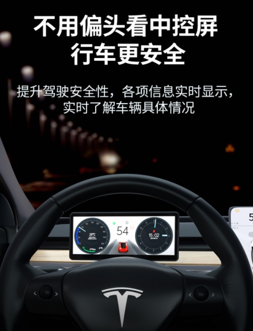 對(duì)于擁有特斯拉model3/Y系列,但是又不習(xí)慣沒(méi)有儀表盤(pán)的朋友,這個(gè)產(chǎn)品確實(shí)是能解決駕駛中出現(xiàn)的偏頭看中控屏幕的問(wèn)題。