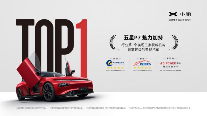 小鵬P7獲得C-NCAP、i-VISTA、J.D.Power最高成績認(rèn)證