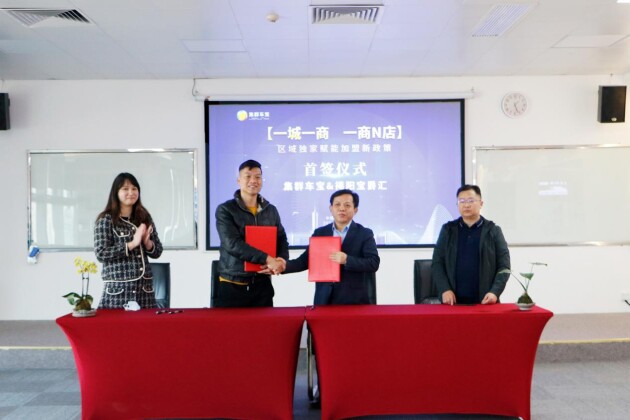 12月4日,集群車寶在廣州之窗總部大廈舉辦了“一城一商”區(qū)域獨(dú)家賦能加盟首家商戶簽約儀式!