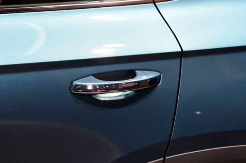 車身造型比較飽滿簡(jiǎn)潔,沒(méi)有太多裝飾,只有一根剛勁的腰線看起來(lái)比較顯眼,貫穿車身,強(qiáng)化了車身的力量感。銀色金屬行李架和裝飾條進(jìn)車身修飾得更為精致一些,前翼子板處銘牌表面的英文字樣表明了它是搭載有智能四驅(qū)系統(tǒng)的車型。U型輪眉向外擴(kuò)散,與熏黑側(cè)裙相配合,共同強(qiáng)化了車身的力量感。雙色輪轂造型簡(jiǎn)潔,看起來(lái)有點(diǎn)像花瓣。前車門全系標(biāo)配無(wú)鑰匙進(jìn)入系統(tǒng)。