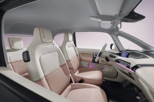 進(jìn)入車艙內(nèi)部,寶駿KiWi EV的內(nèi)飾采用的是環(huán)保的秸稈材料,所以環(huán)保且沒有異味,還有很好的抗劃傷性,這也是國內(nèi)首次嘗試采用這種材料,算是一個新創(chuàng)新。寶駿KiWi EV配備了皮質(zhì)座椅,面料使用了仿真皮Nappa紋路,手感順滑舒適。新推出的”時髦金“配色還預(yù)留出了可定制的刺繡位,讓車主們可以在車?yán)锎蛏献约旱臉?biāo)簽,成為獨一無二的寶駿KiWi EV。