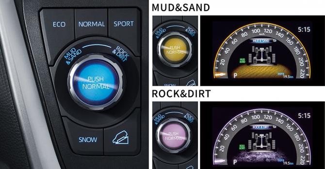 與同級競品車型相比,RAV4榮放還展現(xiàn)了多模式駕乘的便捷、舒適優(yōu)勢。它搭載四驅(qū)綜合管理系統(tǒng)(AIM),通過協(xié)調(diào)車輛的發(fā)動機、變速器、EPS電子助力轉(zhuǎn)向系統(tǒng)、制動器和四驅(qū)系統(tǒng),可在不同路況條件下,提供不凡的操控性及穩(wěn)定性。行駛到崎嶇路段,不小心被困時,RAV4榮放TRAIL模式能夠讓人一鍵輕松脫困,通過AIM統(tǒng)合控制,有效抑制車輪打滑,增加后輪扭矩分配,帶來遠超同級競品的崎嶇強悍性能。用戶還可以根據(jù)不同的路面情況,選擇適合路面狀況的模式,NORMAL模式適用于公路及一般越野路況,MUD&SAND模式適用于泥濘與沙地路面,ROCK&DIRT模式適用于多石土質(zhì)路面。不同模式,解鎖不同駕趣。