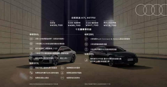 聚光燈下,全新奧迪A7L 45TFSI車型迎來首秀,并正式啟動(dòng)預(yù)訂。全新奧迪A7L 45TFSI共2款車型,售價(jià)為45.97萬元至51.97萬元。全新奧迪A7L 45TFSI入門車型即搭載了180kW高功率發(fā)動(dòng)機(jī),同時(shí)標(biāo)配5G/V2X技術(shù)、高清矩陣式LED大燈帶動(dòng)態(tài)轉(zhuǎn)向燈、定速巡航系統(tǒng)、奧迪虛擬座艙增強(qiáng)版、前排運(yùn)動(dòng)座椅、無框車門等裝備,甄選車道偏離預(yù)警及回正與奧迪整體式預(yù)安全系統(tǒng)基礎(chǔ)版,讓駕駛者能夠從容應(yīng)對(duì)、智享出行。