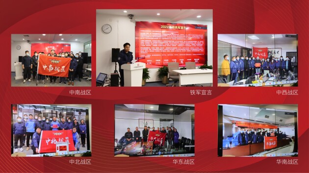 同時,駕安配中南、中西、中北、華東與華南五大戰(zhàn)區(qū)分別簽署責(zé)任狀并領(lǐng)取戰(zhàn)旗。面對2022年的全新目標與“開門紅”激勵方案,五大戰(zhàn)區(qū)全體鐵軍慷慨激昂,一聲聲口號鏗鏘有力,一句句誓詞擲地有聲,以氣吞山河的決心與信念,喊出團隊風(fēng)采,展現(xiàn)了使命必達、再創(chuàng)佳績的堅定決心和昂揚斗志。