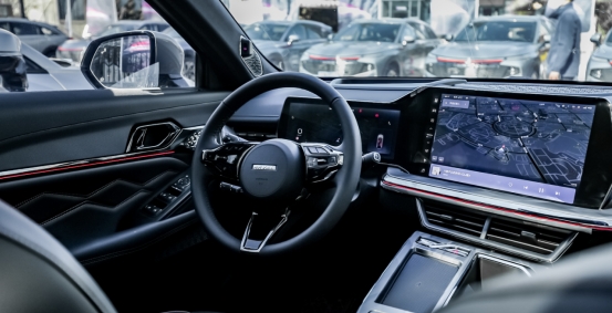 而第一次試駕這么智能的車,看到這陣仗說實話有被嚇到。懸掛式12.3+14.6寸雙聯(lián)曲面大屏,虛擬的按鍵設(shè)計充滿著科技感,屏幕上手滑動拖拽等,的確能夠感受得到車機的靈敏性,同時屏幕整體給予我的觸感也是很舒適的感覺。