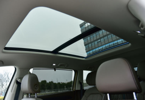 可開啟全景天窗全系標配,采光面積巨大,增加了內(nèi)飾的通透性。