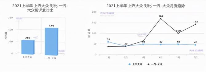 投訴量從一定程度上來講,可以反映車主們對(duì)于品牌的評(píng)價(jià)。根據(jù)汽車投訴網(wǎng)的數(shù)據(jù)顯示,在2021年上半年,一汽大眾的投訴量要遠(yuǎn)遠(yuǎn)高于上汽大眾,從去年年初開始,一汽大眾的投訴量增長(zhǎng)速度要高于上汽大眾兩倍還不止。這樣的高投訴量直接影響了一汽大眾的聲望,在準(zhǔn)車主們心中丟失掉了一定份量的信任,這對(duì)于企業(yè)的發(fā)展是不利的。單看投訴量的話,上汽大眾贏了。