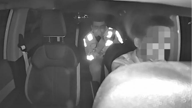 那天晚上,夜色朦朧,丁儉在出車途中一帆風(fēng)順,要是沒有意外的話,這一天可以說是又過得不錯。但沒想到,丁儉正在接受酒精測試時,居然親眼目睹了一場酒駕逃逸事件。