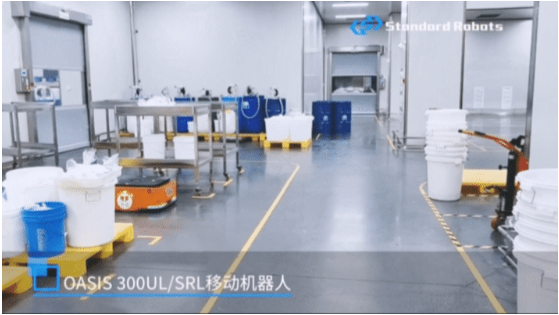 方案中,斯坦德移動(dòng)機(jī)器人OASIS 300UL/SRL負(fù)責(zé)執(zhí)行乳化車(chē)間、包材車(chē)間物料運(yùn)輸任務(wù),當(dāng)車(chē)間某一設(shè)備需要物料時(shí),由員工使用平板電腦發(fā)送用料需求,通過(guò)FMS調(diào)度系統(tǒng)呼叫OASIS 300UL/SRL前來(lái)運(yùn)輸物料。