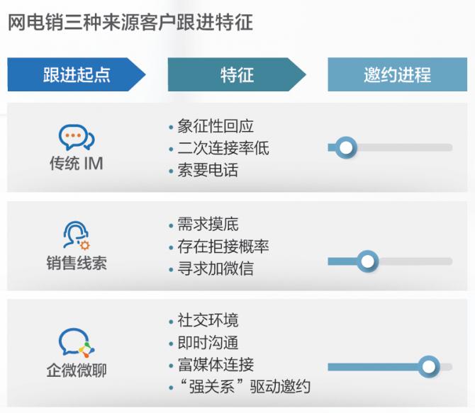“傳統(tǒng)的電銷業(yè)務(wù),每個(gè)銷售線索需要經(jīng)歷打回訪、明確意向、加微信這三個(gè)步驟,才能鎖定一個(gè)有價(jià)值的潛客,無論哪一步做的不到位,我們都沒有安全感。而企微收到的幾乎每個(gè)微聊咨詢,客戶初始進(jìn)入的狀態(tài)就已經(jīng)繞過了這三步,站在價(jià)值衡量角度,也就超過了傳統(tǒng)的銷售線索。”王江明說道。