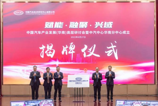 2022年4月27日,中國汽車產(chǎn)業(yè)發(fā)展(華南)高層研討會暨中汽中心華南分中心成立活動在天津、廣州兩地通過線上方式隆重舉行。中汽中心黨委書記、董事長安鐵成出席會議并揭牌。中汽中心華南分中心正式揭牌成立,標(biāo)志著中汽中心踐行國家戰(zhàn)略、服務(wù)區(qū)域經(jīng)濟(jì)發(fā)展邁出堅(jiān)實(shí)新步伐。