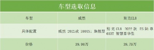 在價(jià)格上,目前上汽大眾威然官方指導(dǎo)價(jià)為28.68萬(wàn)-39.98萬(wàn),別克GL8指導(dǎo)價(jià)為23.29萬(wàn)-53.39萬(wàn),價(jià)格上的重合度較高,在市場(chǎng)上的競(jìng)爭(zhēng)也在所難免。結(jié)合40萬(wàn)左右的預(yù)算,我們分別選擇了售價(jià)39.98萬(wàn)的威然 2022款 380TSI 旗艦型(以下簡(jiǎn)稱:威然)和售價(jià)39.79萬(wàn)的別克GL8 2022款 ES陸尊 653T 智慧豪華型(以下簡(jiǎn)稱:別克GL8)進(jìn)行對(duì)比,其中威然為頂配車型,別克GL8為高配車型,但因兩款配置車型價(jià)格上差距較小,因此拿來(lái)比較也相對(duì)公平合理。