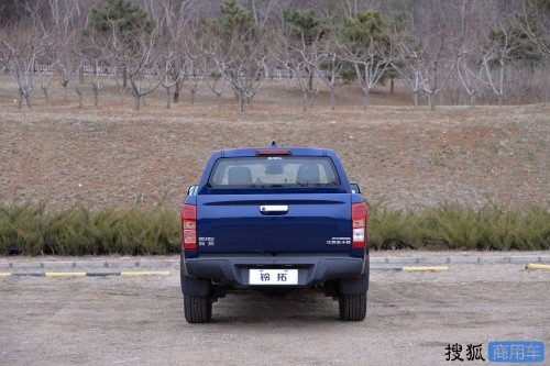 車尾部分,汽油版鈴拓的整體造型比較方正,左右兩側搭載L造型尾燈,中間為貨箱門把手,底部兩側分別是鈴拓和江西五十鈴的標識。另外,在后保險杠區(qū)域,汽油版鈴拓采用全黑造型,看起來更富有年輕感。