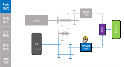 與城區(qū)擁堵道路所不同,在市郊、高速等路況下行駛時,車輛的運(yùn)行狀態(tài)較為平穩(wěn),巡航速度通常也會在一個較高的時速區(qū)間當(dāng)中。而驅(qū)動電機(jī)的基準(zhǔn)轉(zhuǎn)速通常在1500-2000轉(zhuǎn)左右,在中低速行駛時的能耗表現(xiàn)更優(yōu)異;而當(dāng)車速提升到80公里以上的高時速之后,電機(jī)的轉(zhuǎn)速提升到了非高效區(qū)間,能耗也會提高越高,此時采用純電驅(qū)動或是串聯(lián)驅(qū)動反而會讓車輛的動力綜合效率下降。