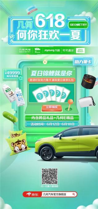 幸運(yùn)夏日,為你而來,豐富有趣的玩法和禮品矩陣,讓我們看到幾何汽車618活動的真心誠意。駕著這樣的人氣潮款電動汽車,你也是夏日里清涼可人的風(fēng)景。