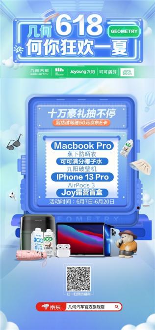 更值得一提的是,針對目前還在選車或觀望階段的用戶,幾何汽車也為前來試駕的用戶準(zhǔn)備了走心好禮,用戶可以體驗(yàn)幾何車型之余,領(lǐng)取50元京東E卡,還可以參與抽獎(jiǎng)MacBook Pro、iPhone13 Pro、Switch、airpods3、SK2禮盒、蕉下、九陽小家電、騰訊視頻年卡等好禮。開通幾何店鋪會員的用戶,還能以會員專享價(jià)購買合作品牌商品。在幾何618,不論是“買”還是“試”,皆能要你滿意而歸。