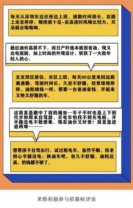 以KOL引爆出行痛點(diǎn)為引子,小米社區(qū)進(jìn)而推出了可讀性更強(qiáng)的條漫互動(dòng)招募帖,并通過小米社區(qū)小米營銷矩陣資源全面引流互動(dòng)帖,發(fā)起車型試駕招募,進(jìn)一步吸引用戶關(guān)注。招募帖發(fā)布后,掀起了米粉的參與熱潮,持續(xù)引爆社區(qū)關(guān)注,并為后續(xù)深度內(nèi)容產(chǎn)出預(yù)熱,制造科技米粉的期待感。