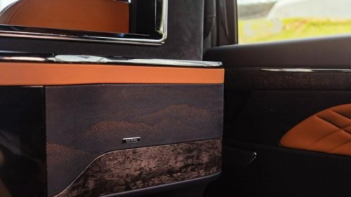 同時,車內(nèi)還新增“棕山云?!敝黝}喇叭罩,并加入環(huán)保槍灰電鍍亮條進行點綴。外罩圖案勾勒出山川與云海交疊的清雅意境,凸顯豪華典雅的國風(fēng)韻味。隔斷處增添槍灰色電鍍亮條裝飾營造高級質(zhì)感,地面升級為立體水波紋地毯,腳感柔軟且有效隔斷底盤噪音,營造靜謐舒適洽談空間。