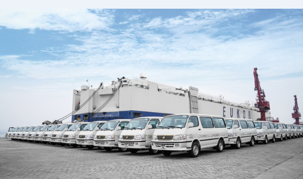 出口埃及市場(chǎng)的1000輛金旅海獅在廈門現(xiàn)代碼頭準(zhǔn)備裝船