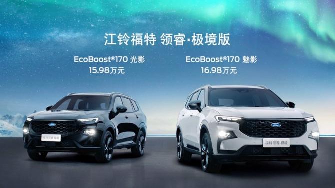 資訊發(fā)布會(huì)上,江鈴福特領(lǐng)?!O境版正式上市,共推出兩款版型EcoBoost?170光影及EcoBoost?170魅影,官方指導(dǎo)價(jià)分別為15.98萬元和16.98萬元。100臺(tái)限量搶訂活動(dòng)在官方商城同步開啟。
