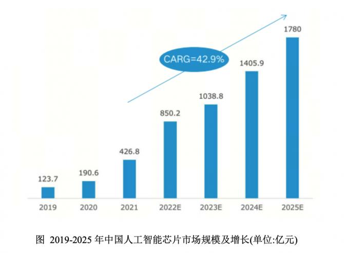 根據(jù)億歐智庫數(shù)據(jù),預(yù)計(jì)2022年中國人工智能芯片市場規(guī)模將達(dá)到850.2億元;2023年中國人工智能芯片市場規(guī)模將達(dá)到1,038.8億元;2024年中國人工智能芯片市場規(guī)模將達(dá)到1,405.9億元;2025年中國人工智能芯片市場規(guī)模將達(dá)到1,780億元,寒武紀(jì)所處賽道前景廣闊。