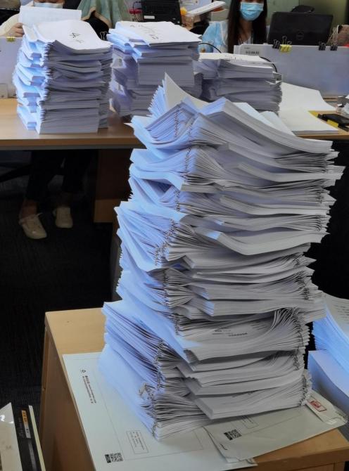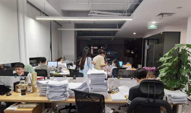 圖為彭孝麗和同事們緊急蓋章的易鑫結(jié)清材料