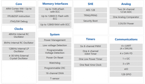 AC7840x為ARM Cortex?-M4F 120 MHz CPU,支持FPU,支持DSP指令,存儲(chǔ)器最大1MB Code Flash,dual bank,支持ECC、最大128KB Data Flash,最大128KB RAM。