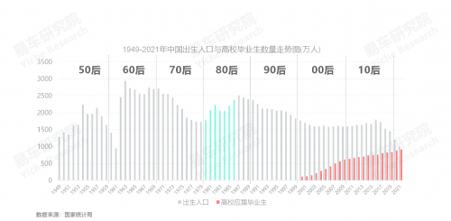 中國高校擴(kuò)招始于20世紀(jì)末與21世紀(jì)初,80后是完完整整受益的一批人,且從80后開始。在80后高校畢業(yè)集中的21世紀(jì)前十年,應(yīng)屆畢業(yè)生人數(shù)由2000年107萬人飆升至2009年611萬人。讀一個(gè)本科,物理層面至少多單身四年,如吸吮點(diǎn)大學(xué)的自由、獨(dú)立與浪漫等甘露,精神層面的單身就無法用時(shí)間衡量了;由于80后受過高等教育的人數(shù)快速提升,整體收入水平自然會(huì)明顯高于社會(huì)整體水平;由于80后是在互聯(lián)網(wǎng)浪潮里學(xué)習(xí)與工作,近十年又是互聯(lián)網(wǎng)浪潮全面賦能能源、制造、零售等傳統(tǒng)產(chǎn)業(yè)的黃金期,助力更多80后晉升至收入更高的企業(yè)管理層……多種因素直接提升了80后的收入,也間接提升了80后的單身率,綜合結(jié)果就是新生代鉆石王老五的數(shù)量快速增加,用戶年齡聚焦中段的車市只會(huì)更加明顯;