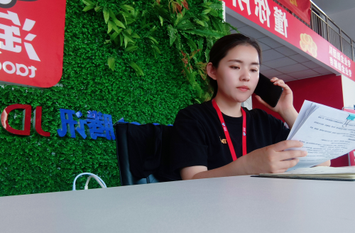趙嬌嬌在電話聯(lián)系客戶中
