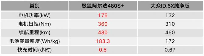 極狐阿爾法T標(biāo)準(zhǔn)續(xù)航版搭載極鋒動力總成,電機(jī)輸出功率達(dá)175kW,扭矩達(dá)360Nm,對比大眾ID.6 X電機(jī)132kW、310Nm的輸出水平,優(yōu)勢十分明顯。而且阿爾法T的官方0-100km/h加速僅7.8秒,最高車速可以達(dá)到180km/h,這兩項(xiàng)成績也優(yōu)于ID.6 X。