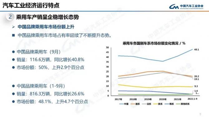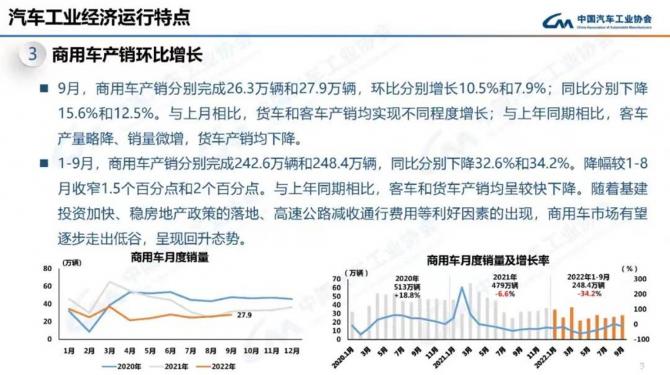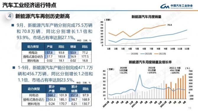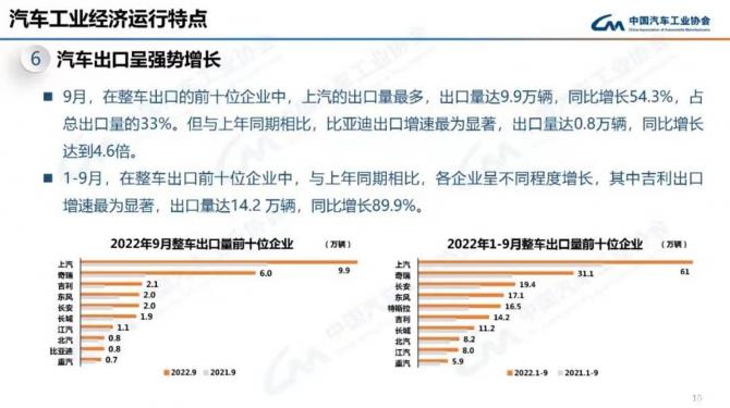 近日,據(jù)中國汽車工業(yè)協(xié)會(huì)統(tǒng)計(jì)分析,2022年9月,汽車月產(chǎn)銷快速增長,總體呈現(xiàn)“淡季不淡,旺季重現(xiàn)”的態(tài)勢(shì),帶動(dòng)行業(yè)企穩(wěn)回升。預(yù)計(jì)在穩(wěn)經(jīng)濟(jì)、促銷費(fèi)政策持續(xù)作用下,四季度汽車產(chǎn)銷將繼續(xù)保持較快增長,新能源汽車以及汽車出口延續(xù)良好發(fā)展勢(shì)頭,全年汽車市場將實(shí)現(xiàn)穩(wěn)增長目標(biāo)。