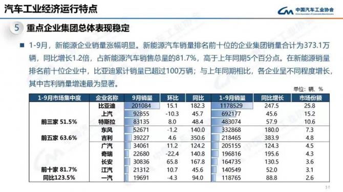9月,汽車產(chǎn)銷分別完成267.2萬輛和261萬輛,環(huán)比分別增長11.5%和9.5%,同比分別增長28.1%和25.7%。1-9月,汽車產(chǎn)銷分別完成1963.2萬輛和1947萬輛,同比分別增長7.4%和4.4%。增速較1-8月擴(kuò)大2.6個(gè)百分點(diǎn)和2.7個(gè)百分點(diǎn)。