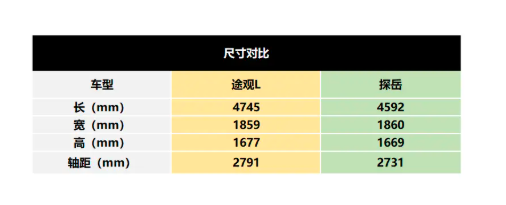與同級(jí)別車(chē)型對(duì)比,探岳和途觀L的空間表現(xiàn)都相當(dāng)不錯(cuò),實(shí)用性很強(qiáng)。但從尺寸上對(duì)比,二者還是有一定差距的。探岳的長(zhǎng)寬高分別為4592mm、1860mm、1669mm,軸距在2731mm,而上汽大眾途觀L的數(shù)據(jù)分別是4735mm、1859mm、1677mm,軸距為2791mm。很明顯可以看出,上汽大眾途觀L(Tiguan L)2023款的長(zhǎng)度、高度和軸距都要比探岳更勝一籌,能為駕乘人員提供更充足的頭部和腿部空間。另外,上汽大眾途觀L的座椅布局也比探岳更靈活,可選7座車(chē)型,能適應(yīng)更多的出行場(chǎng)景。