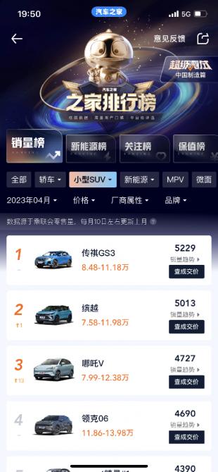 現(xiàn)在賣得最好的小型SUV是誰(shuí)?當(dāng)然是傳祺GS3·影速!據(jù)汽車流通協(xié)會(huì)數(shù)據(jù),傳祺GS3·影速以4月熱銷5229臺(tái)的亮眼成績(jī),再次登頂小型SUV銷量榜冠軍寶座。從3月上市以來,傳祺GS3·影速就以勢(shì)不可擋的姿態(tài),牢牢占據(jù)了銷量第一的位置,無疑是小型SUV市場(chǎng)的“當(dāng)紅炸子雞”。而且在近期,憑借優(yōu)異的產(chǎn)品品質(zhì)和用戶口碑,傳祺GS3在2022年度小型SUV質(zhì)量排行榜中位列第一,成為公認(rèn)質(zhì)量最好的小型SUV!