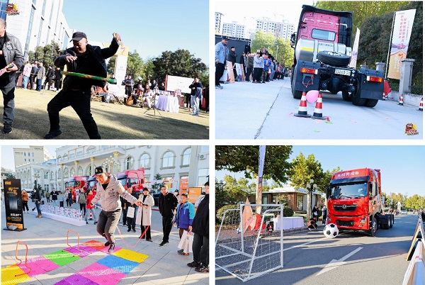 在三站線下活動(dòng)場(chǎng)地,最吸引卡友和家人駐足的是形式各異的游戲互動(dòng)區(qū)。在這些區(qū)域里,有東風(fēng)商用車和當(dāng)?shù)亟?jīng)銷商用心籌備的互動(dòng)游戲和小禮品。一站到底問答互動(dòng)、通關(guān)打卡抽獎(jiǎng)、愛的明信片、手工涂鴉繪畫、指壓板跳繩、轉(zhuǎn)呼啦圈、……每一個(gè)小小的游戲,牽引出卡友和家人在時(shí)光里難得的放松和愜意,孩子們純真的笑容、家人關(guān)心的吶喊、卡友久違的擁抱,構(gòu)成了一幅幅美好的畫面,溫暖了東風(fēng)天龍哥大賽(第7季)的賽場(chǎng),也溫暖了所有關(guān)注賽事的中國(guó)卡友的心田。