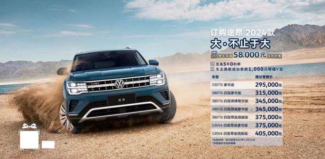 上汽大眾此次與實(shí)力派影帝吳京的合作,也將上汽大眾途昂家族的關(guān)注度和話題度再次提升,加強(qiáng)了大眾品牌與向往戶外刺激冒險(xiǎn)的用戶之間的情感連結(jié),同時(shí)卓越的產(chǎn)品實(shí)力也將貼合多場(chǎng)景出行需求,滿足用戶日常的城市出行。根據(jù)上汽大眾途昂(Teramont)官網(wǎng)顯示,現(xiàn)在訂購(gòu)?fù)景海═eramont)2024款,單車至高優(yōu)惠58,000元,還有多重禮遇,入手好時(shí)機(jī)!